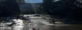 São três opções de rapel: Rapel da Plataforma, Rapel da Gruta e, para pessoas com deficiência e mobilidade reduzida, oferecemos o Rapel do Berro.
