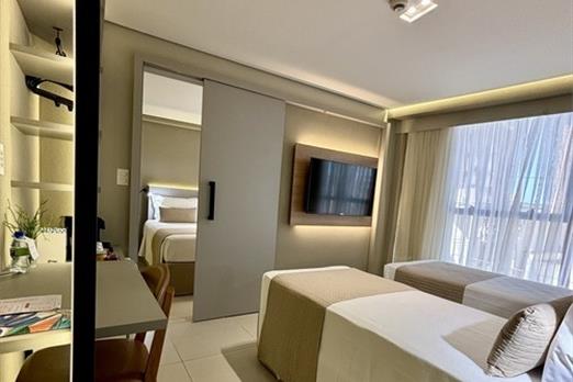 Apartamento dividido em 02 ambientes, sendo 01 desses com 01 cama casal e o outro com 02 camas de solteiro. Os dois ambientes são completos...