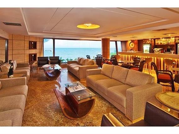 Com aproximadamente 30m², banheira de hidromassagem, cama box spring, frigobar, TV LCD 32”, varanda, Wi-fi, telefone com discagem direta DDD...