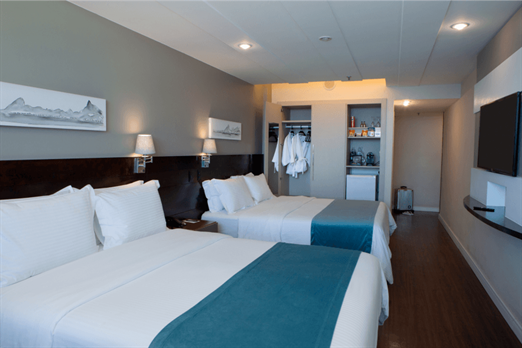 Quartos de 31m² com vista para o mar. Possui 2 camas de casal tamanho queen size que acomodam família de até 04 pessoas. Equipados com ar...