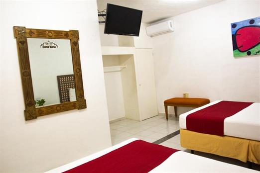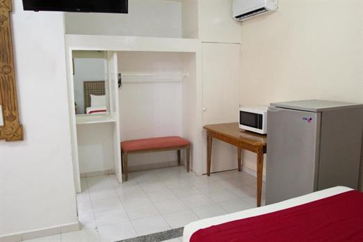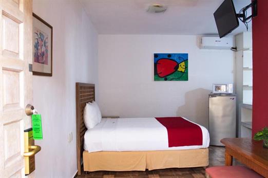 Habitación son una cama matrimonial, tv con cable, aire acondicionado y baño privado.