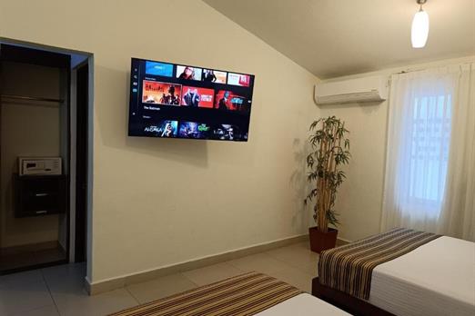Habitaciones con 2 camas tipo matrimoniales, servicio de wifi, tv con cable y aire acondicionado.