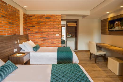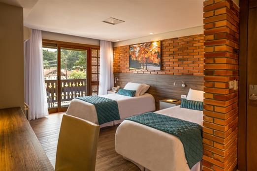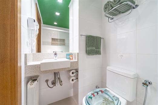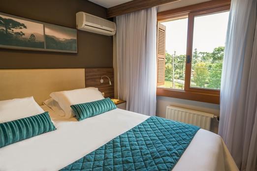 Ar cond.| Frigobar | Cama Box | Cofre | Tv por assinatura | Piso frio | Secador de Cabelo | Amenidades | Até 3 pessoas | Aprox. 14m²
