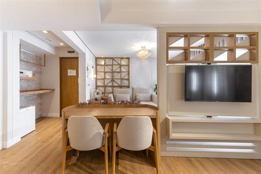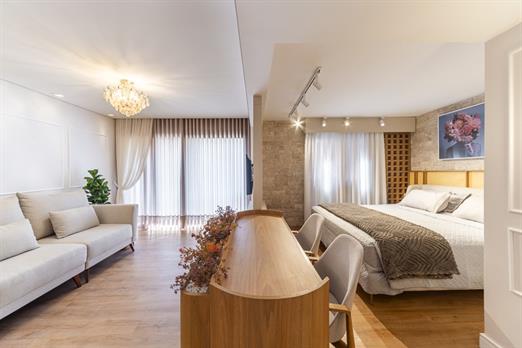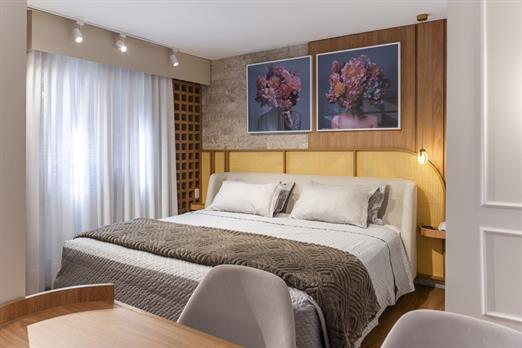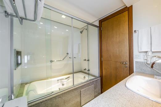 Ar cond. | Frigobar | Dois Ambientes | Sacada | Banheira de Hidromassagem | Secador de Cabelo | Amenidades | Até 4 Pessoas | Aprox. 22m²