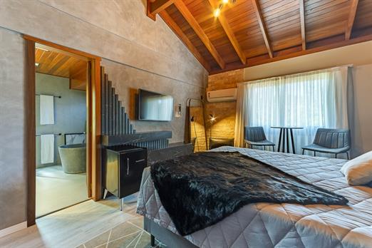 Ar cond. | Frigobar | Cama Queen size| Cofre | Banheira | Smart TV| Secador de Cabelo | Amenidades | Até 2 Pessoas | Aprox. 22m²