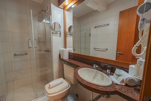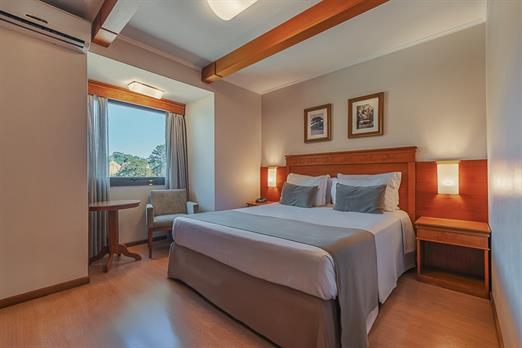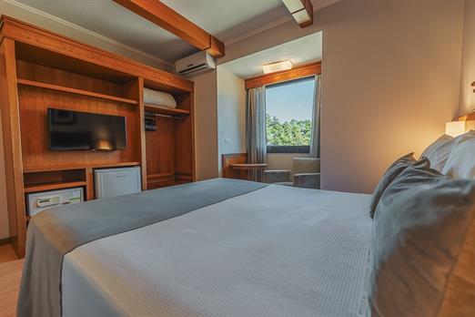 Ar condicionado | Frigobar | Cama Box | Cofre | Tv por assinatura | Piso frio | Secador de Cabelo | Amenidades | Aprox. 13m²