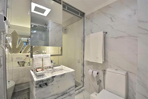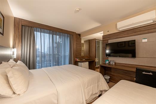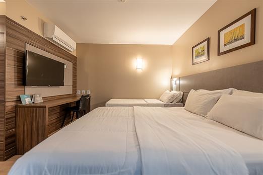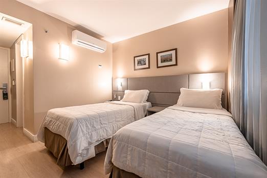 Ar condicionado | Frigobar | Cama Box | Cofre | Tv por assinatura | Piso frio | Secador de Cabelo | Amenidades | Aprox. 19m²