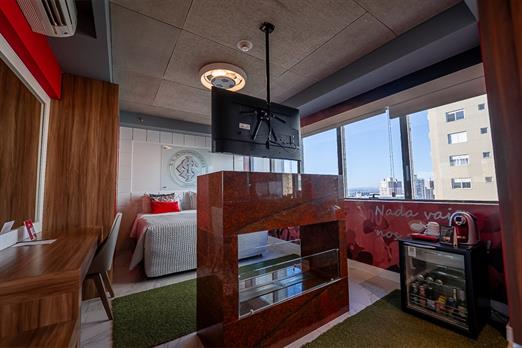 Ar condicionado Split | Frigobar | Cama Queen | Piso frio | Secador de Cabelo | Cofre | Amenidades | Smart TV 43' | Aprox. 15m²