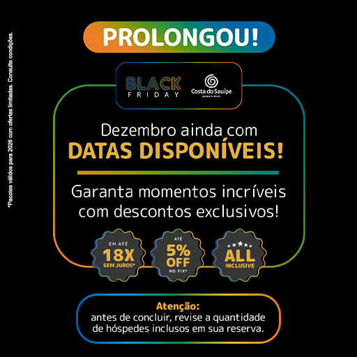 A reabertura do Sauipe Sol Grand Premium - All Inclusive marca o início de uma nova fase para um dos hotéis mais emblemáticos da Costa do Sauípe. Com mais beleza, conforto e comodidade, o hotel oferece uma experiência única para que cada momento dos nossos hóspedes seja tranquilo, agradável e inesquecível. O novo Sauipe Sol Grand Premium - All Inclusive nasce para entregar uma hospedagem superior, com todo o acolhimento e bem-estar que só a Bahia pode oferecer. Pensado para grandes momentos em família, o hotel traz ambientes modernos, piscinas adulto e infantil exclusivas, localização à beira-mar e uma programação variada de lazer. Tudo isso com o conforto e os serviços que fazem do Sauipe Sol Grand Premium - All Inclusive um verdadeiro refúgio de tranquilidade. A gastronomia também foi renovada, com opções deliciosas em todos os momentos do dia, no sistema all inclusive. São refeições completas e petiscos variados, além de uma carta de bebidas com rótulos nacionais e importados. Diferenciais: • Welcome drink • Atendimento de garçons na piscina • Check-in às 15h (consumo liberado e quarto conforme disponibilidade) • Copa baby • Transporte interno a cada 20 minutos All Inclusive Grand Premium O sistema inclui café da manhã, almoço, jantar, ceia e petiscos, além de bebidas alcoólicas e não alcoólicas. Bebidas incluídas: • Cervejas: 5 marcas Lager do portfólio Ambev • Drinks com destilados nacionais/importados premium • Vinhos: espumante brut e moscatel nacional, vinhos tinto e branco importados • Whisky: rótulos importados 8 e 12 anos • Vodka e gin: nacionais premium e importados • Minibar com água, refrigerantes e cervejas • Sucos, água de coco e refrigerantes diversos Gastronomia • Restaurante buffet all inclusive (café da manhã, almoço, jantar, petiscos, lanche da tarde e ceia) • Cozinha Show e ilhas temáticas no jantar Bares • Lobby Bar (11h às 01h): cervejas, drinks, cafés especiais, água de coco, petiscos variados • Bar da Piscina: petiscos, acarajé, pizzas, churrasco no almoço, bebidas variadas Piscinas • 3 ambientes (sendo 1 infantil) • Funcionamento: 09h às 18h • Atividades recreativas e serviços exclusivos Áreas sociais • Brinquedoteca (em breve) • Salão de jogos completo (em breve) • 2 copas do bebê e 2 fraldários • 8 salas para eventos • Espaço para chá da tarde O Sauipe Sol Grand Premium - All Inclusive renasce para ser mais que um hotel: é um lugar para se reconectar, criar memórias, viver grandes momentos e sentir a Bahia de um jeito único. Informamos que as quadras de tênis estão em reforma a partir desta data, com previsão de conclusão até o final de agosto. Durante esse período, elas estarão temporariamente indisponíveis para uso. Agradecemos a compreensão. As melhorias visam oferecer ainda mais conforto, segurança e qualidade para todos os nossos hóspedes.