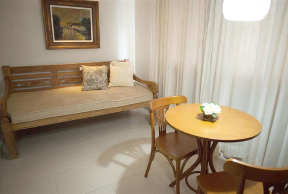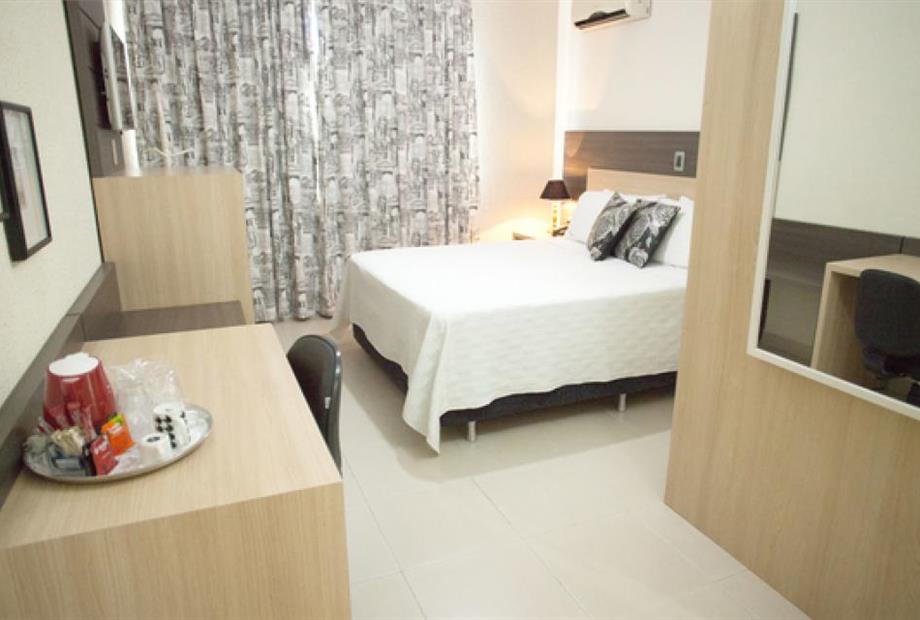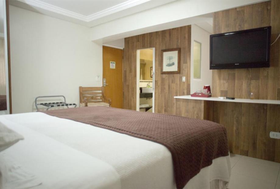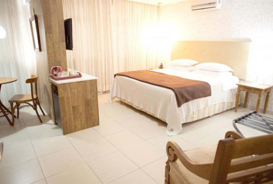 Ar condicionado, cama box, frigobar, TV a Cabo.