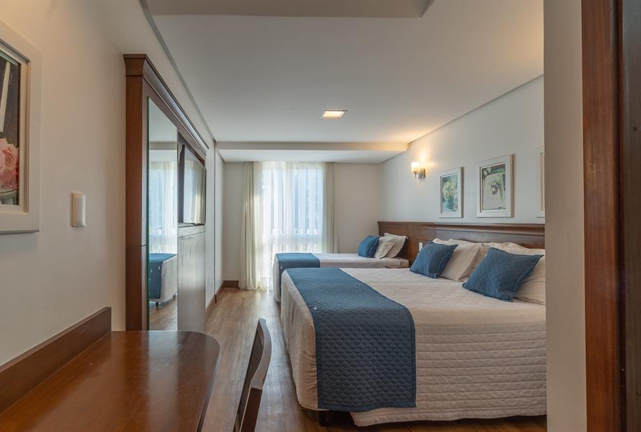 Quarto com capacidade para até 3 hóspedes, sendo as configurações possíveis: 1 cama de casal e 1 de solteiro ou 3 camas de solteiro. Disponi... (ver mais)