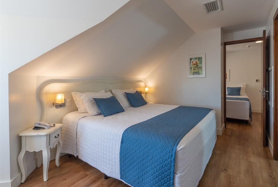 Quarto com capacidade para até 4 hóspedes, sendo as configurações possíveis: 1 cama de casal e 2 de solteiro,...
