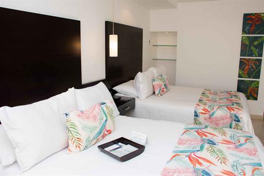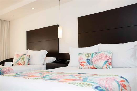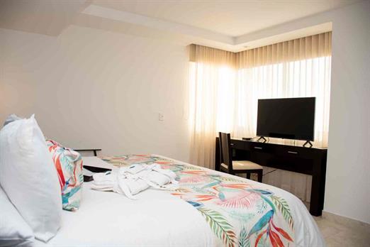 Dos camas dobles matrimoniales, balcón con vista lateral al mar. 44 mts2