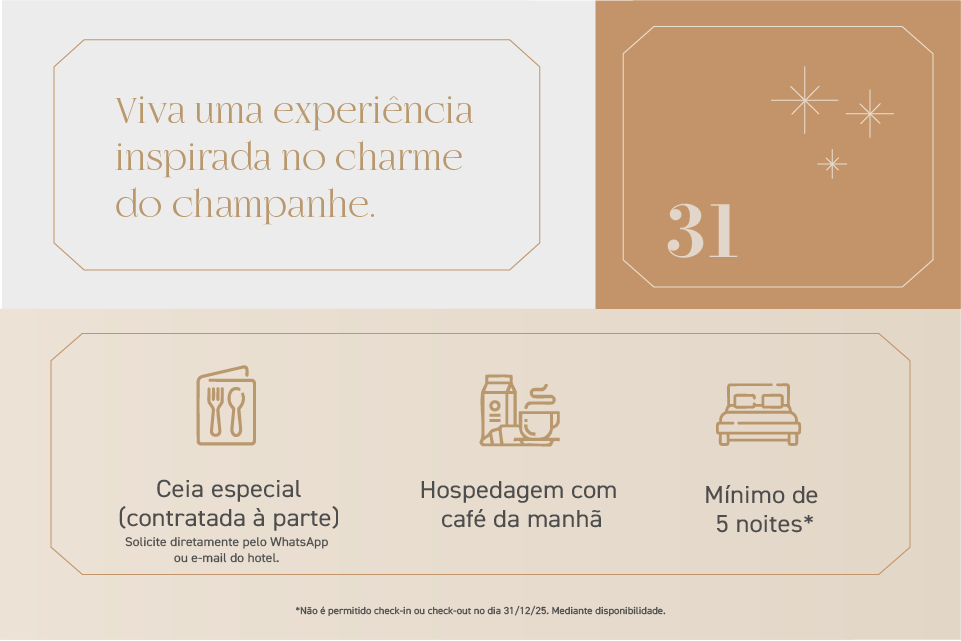 Todo o charme e a elegância do champagne em apartamentos equipados com 18m², TV Smart 43", ar condicionado split, internet wi-fi, cofre elet...