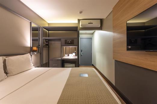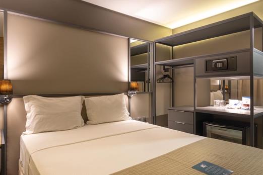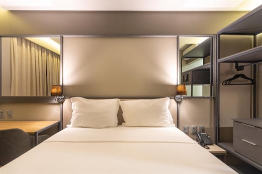 Apartamento moderno e aconchegante, ideal para a sua estada. É equipado com duas camas box de solteiro, bancada de trabalho, ar-condicionado...