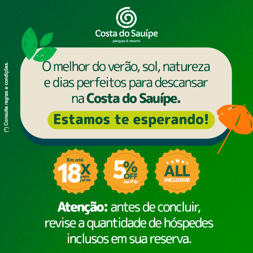 Somos conhecidos por ser um dos melhores resorts all Inclusive do Brasil. All Inclusive significa “tudo incluso”.O regime de pensão all inclusive oferece café da manhã, almoço, jantar, consumo de frigobar, consumo nos bares da piscina e do lobby. Bebidas inclusas: água, refrigerantes, sucos variados, água de coco, cervejas, vinhos e espumantes, caipirinhas, caipiroskas , vodka, cachaças e whiskeys.