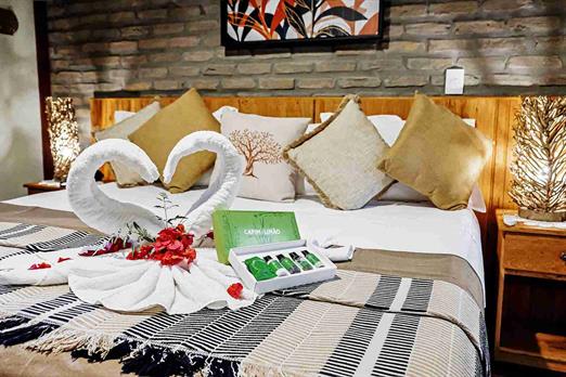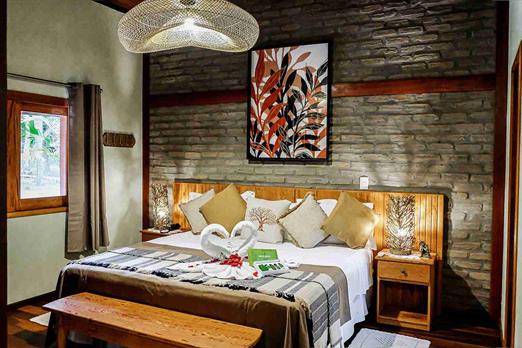 Chalés individuais com 20 metros quadrados de área, ar condicionado, varanda, frigobar e televisor, repletos de conforto e perfeitos para o...
