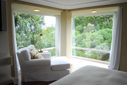 Aconchegante! Amplas janelas com vista para o bosque e ambientes decorados para transmitir bem estar, podem ser integrados através do hall d...