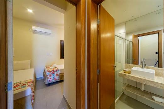 Com 32m² localizado no andar térreo, com dois ambientes (ante-sala com cama e quarto principal), acomoda até quatro pessoas (ver política de...
