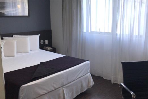 Quarto com cama de casal, cofre Digital, Tv de Led 29´, Adega, Tv a cabo, wifi, mesa de trabalho e telefone, armário, banheiro com bancada,...