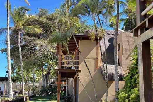 3 Apartamentos luxo-jardim andar superior – até 4 pessoas – com sala e quarto no mesmo ambiente, banheiro, varanda com rede, espreguiçadeira...