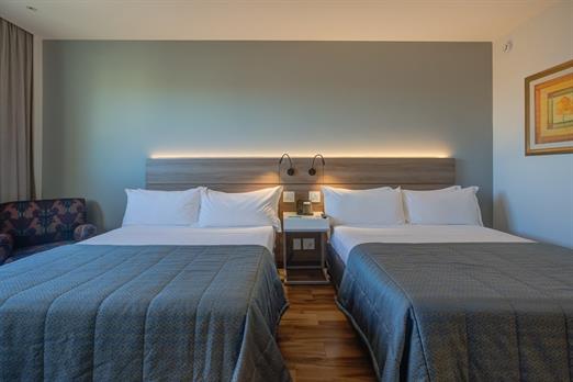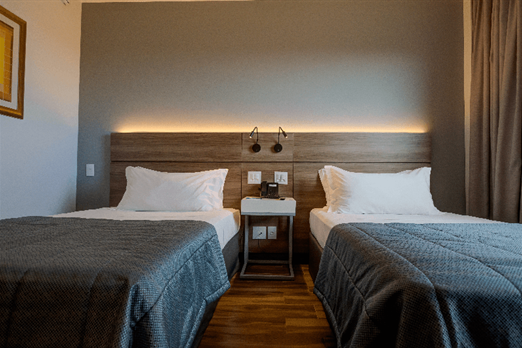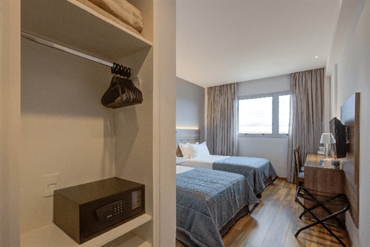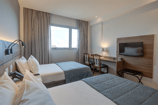 Apartamentos de 23m² com duas camas queen size (1,50 X 2,00), mesa de trabalho, acesso à Internet WI-FI, ar-condicionado com controle indivi...