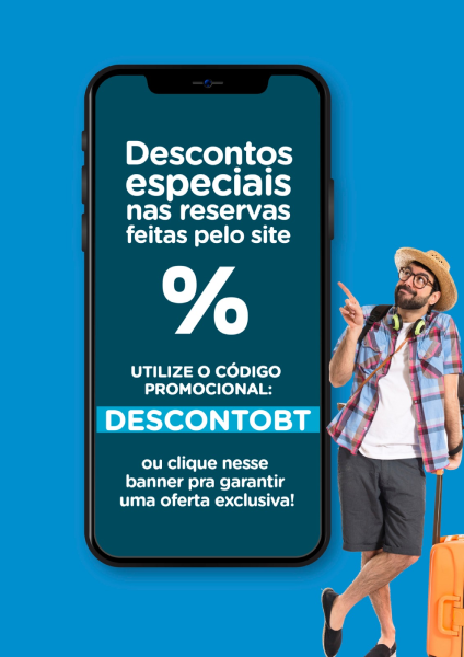 Apartamento com 46m² totalmente climatizado. Uma suíte com cama de casal ou duas camas de solteiro. Minicozinha e frigobar. Sala de estar co...