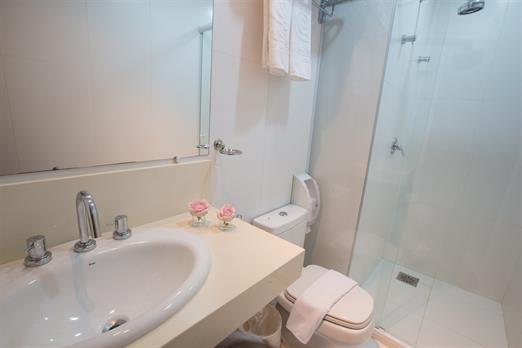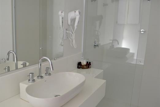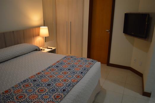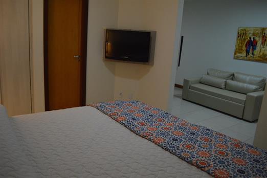 Suíte de 37 m² com uma cama king size ou duas camas de solteiro e para a terceira pessoa é adicionado no living um sofá cama ou uma cama ext...