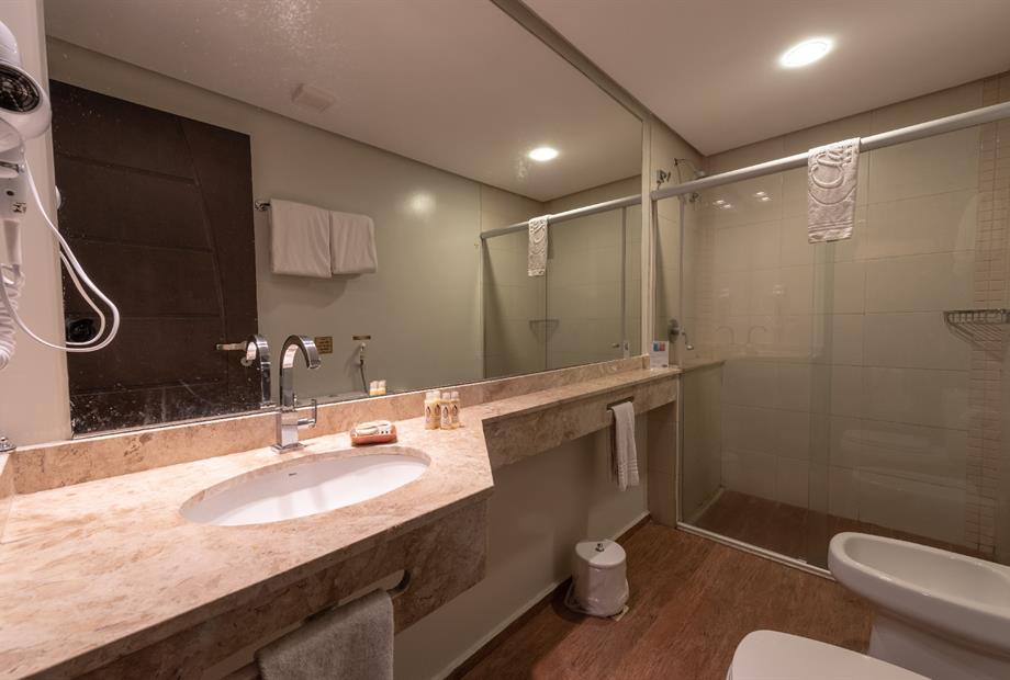 Acomodação com Uma cama king size 2x2m, secador de cabelo, TV 32”, ar condicionado split, armário, telefone, f...