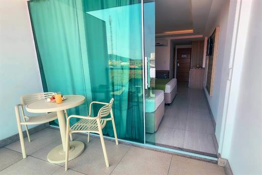Explore nosso espaço de 24m², completo com uma varanda equipada com mesa e cadeiras, oferecendo uma vista lateral encantadora do mar. Este...