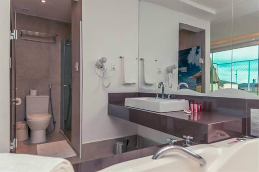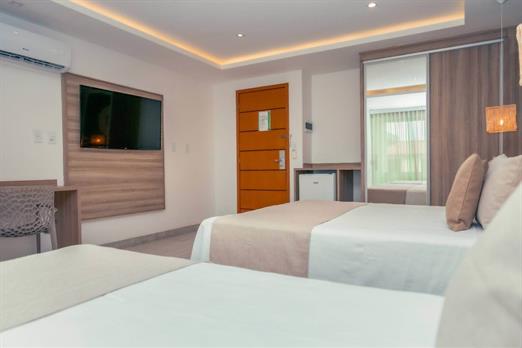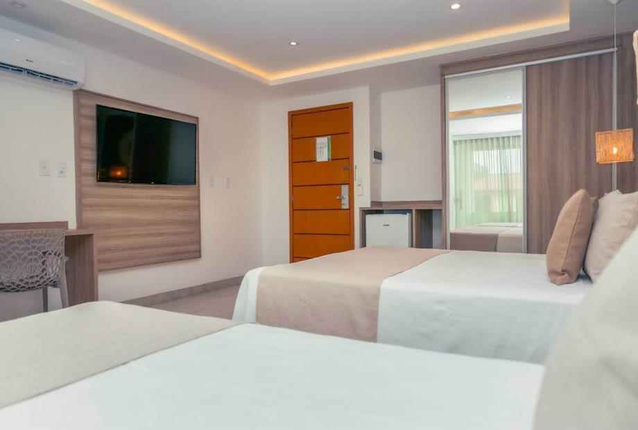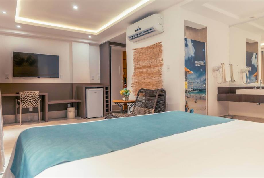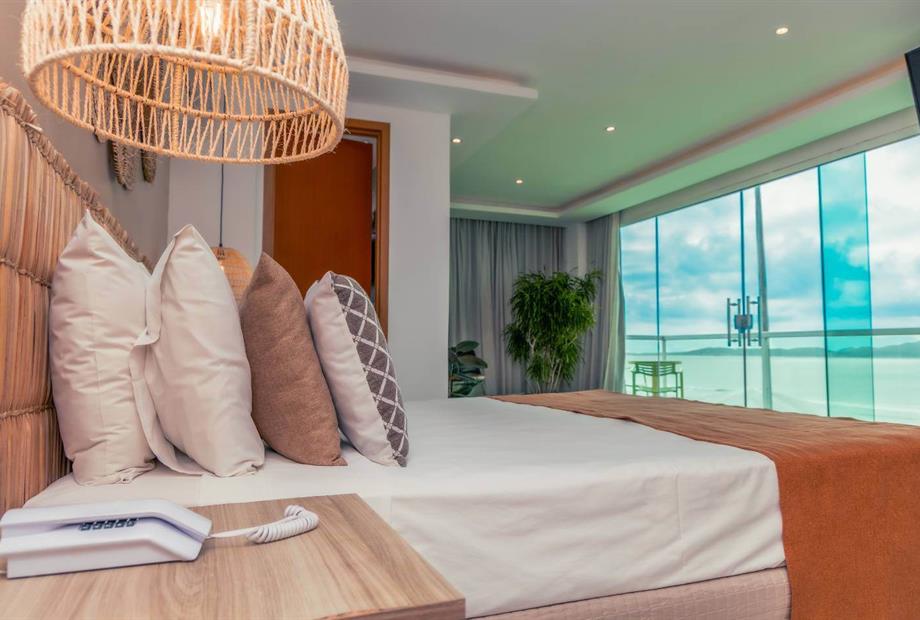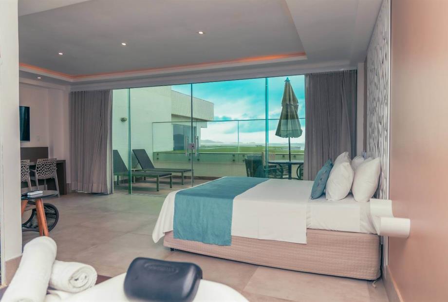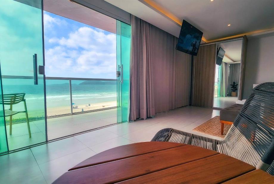 Adentre nossa Suíte Premium de 26m², onde cada detalhe foi pensado para oferecer conforto e praticidade em um ambiente à beira-mar. Aproveit...