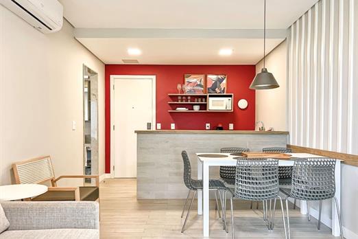 Unidade com 52m². Disposto de Sala com sofá cama casal e copa americana. Quarto com cama casal King Size e Sofá Cama Solteiro, office, cofre...
