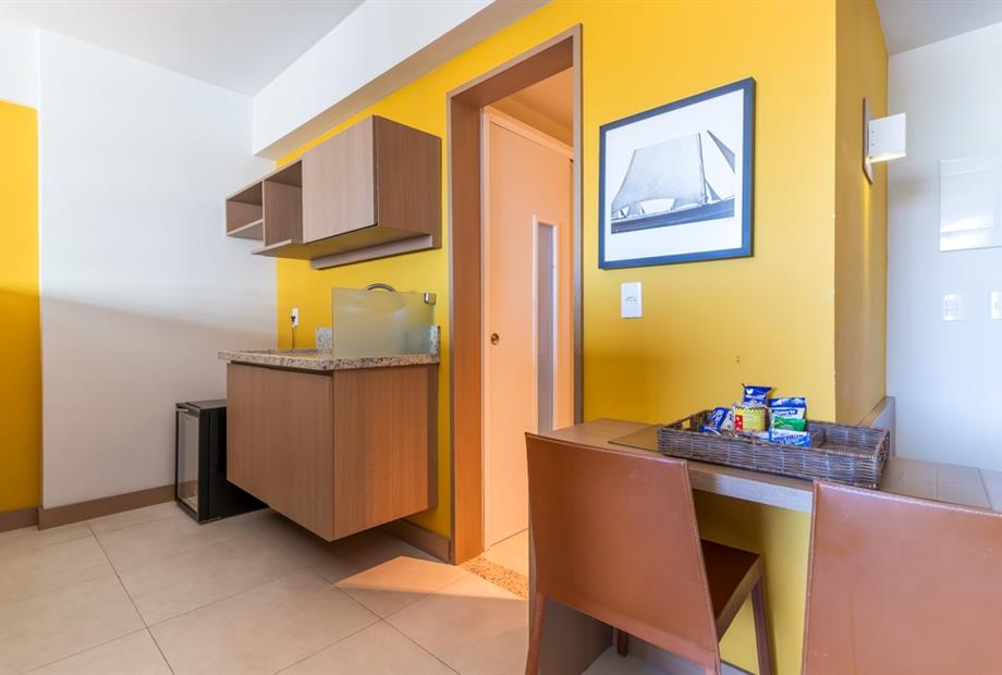 Como diferencial esta categoria oferece cozinha equipada com geladeira, microondas, pia com bancada em granito e armários embutidos, mesa pa... (ver mais)