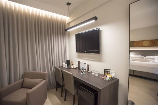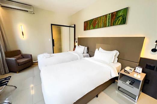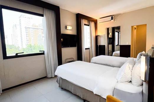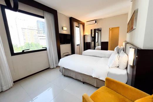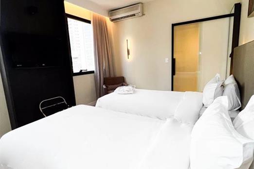 Apartamentos com 24m², localizados do 1° ao 5° andar e equipados com ar condicionado, telefone, TV a cabo 42”, acesso à internet, cofre elet...
