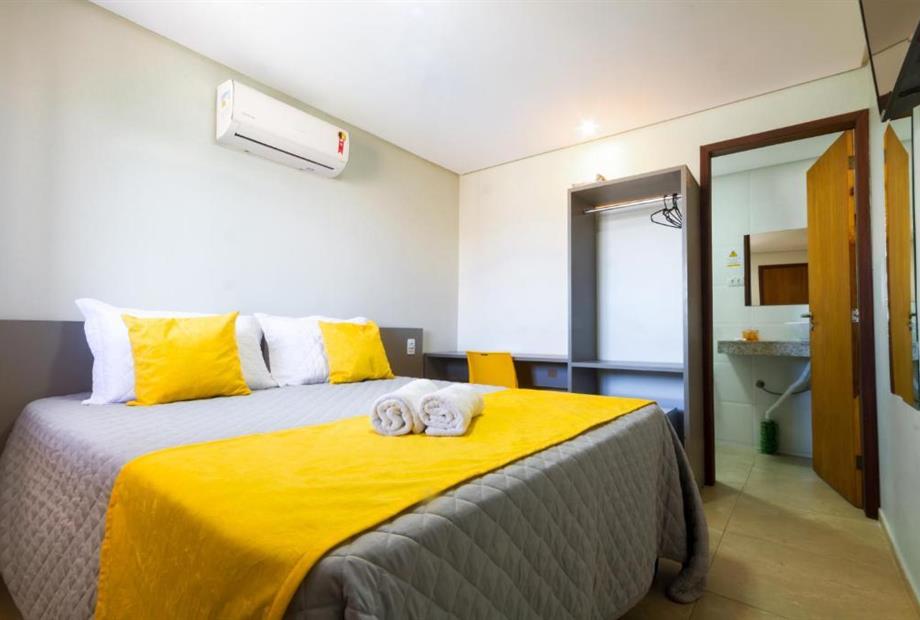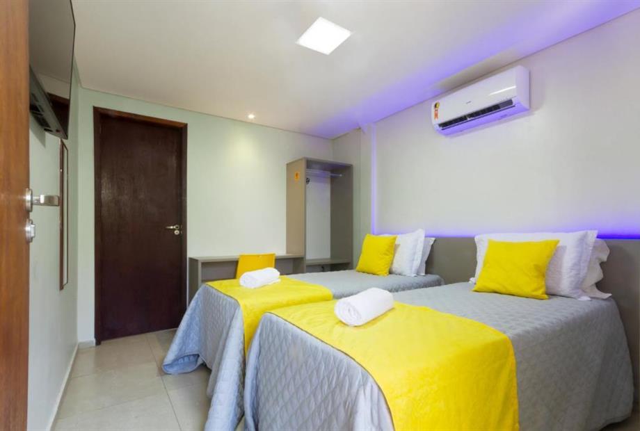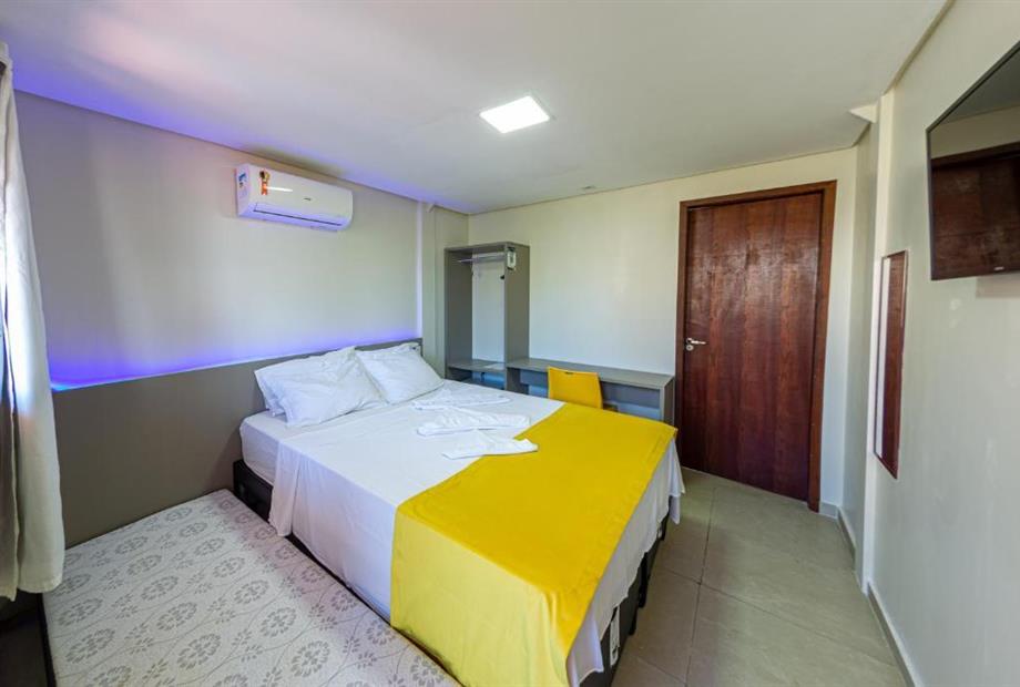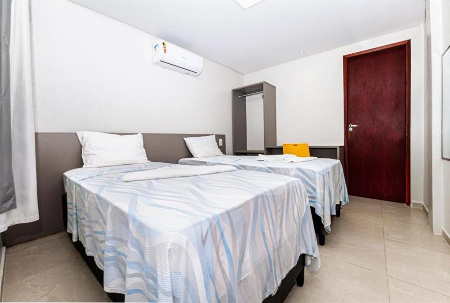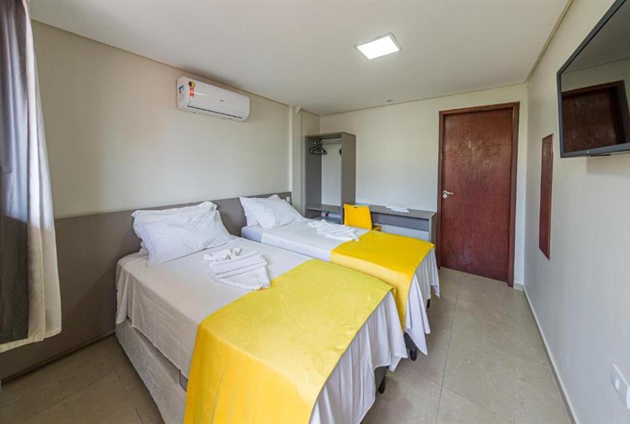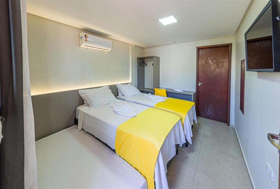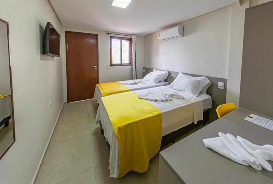 Os Quarto Duplos são do tipo suites de 13mt2, ficam localizados no 1°,2° e 3° pavimento na configuração de 1 cama de casal ou 2 camas de sol...