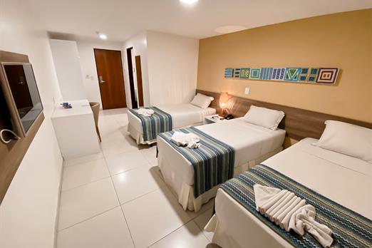 Standard Triplo Casal + 1 com 1(uma) cama de Casal com pillowtop (1,76 x 1,98) + 1(uma) cama de solteiro (0,88 x 1,98) **Wi-Fi; Frigobar;...