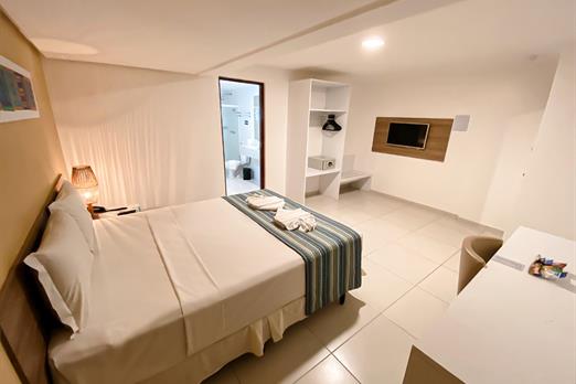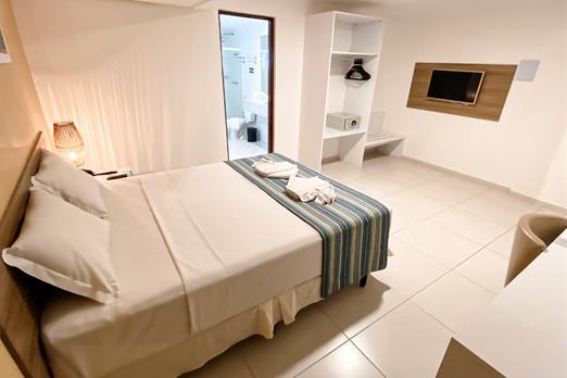 Standard Casal - CASAL (1,76 x 1,98) **Wi-Fi; Frigobar; Enxoval; Cofre digital; Ar-condicionado Split; TV LED 43”; Armário; Ducha aquecida...