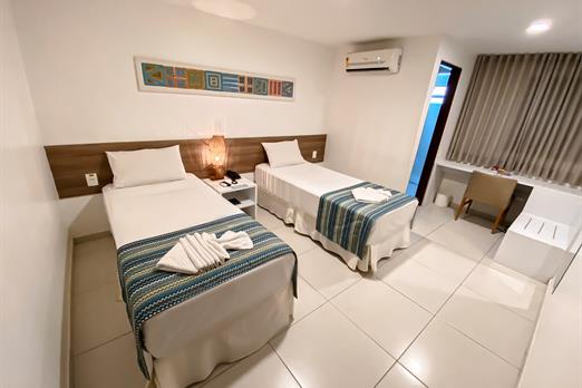 Standard duplo Twin - 2(duas) camas de solteiro (0,88 x 1,98) **Wi-Fi; Frigobar; Enxoval; Cofre digital; Ar-condicionado Split; TV LED 43”;...