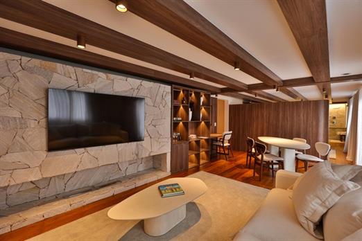 Com 62 m², as modernas Suítes Super Luxo oferecem sala de estar completa, lareira ecológica, varanda e uma área integrada entre o quarto e a...