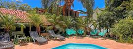 Apartamentos amplos e confortáveis com vista para o jardim e piscina. Nossos apartamentos oferecem: Cama de casal; Varanda com rede e mesa;...