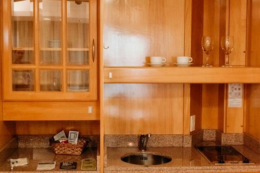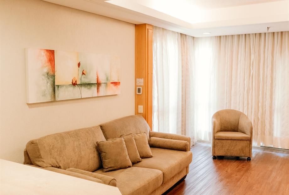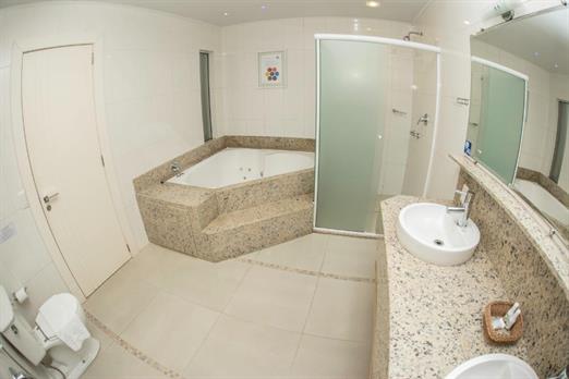 🧳 Facilidades do Apartamento: minicozinha com micro-ondas e minibar / Sacada / Banheira de hidromassagem / Ar-condicionado / Antessala / 2...