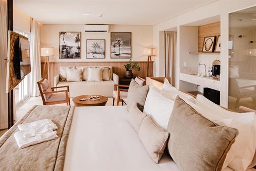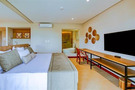 Os apartamentos Suíte possuem 1 cama king e 1 sofá cama na ante sala, acomodando até 03 pessoas. O quarto possui ar-condicionado, secador de...