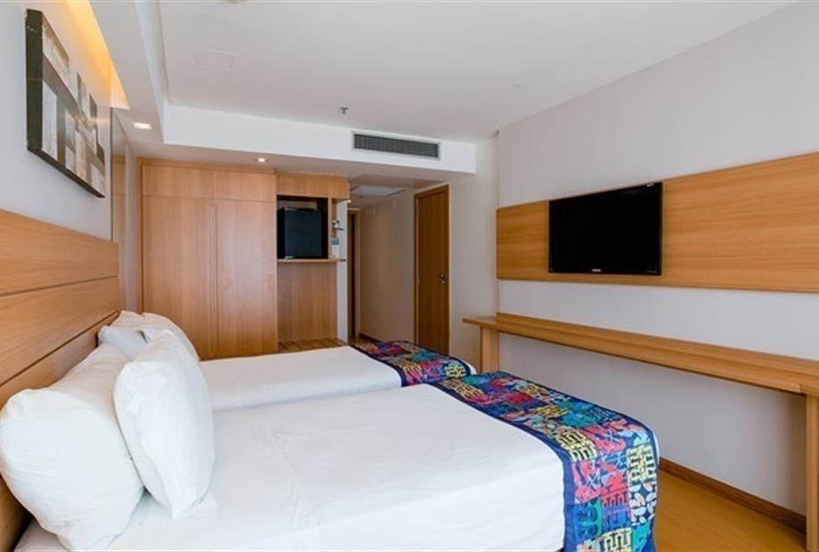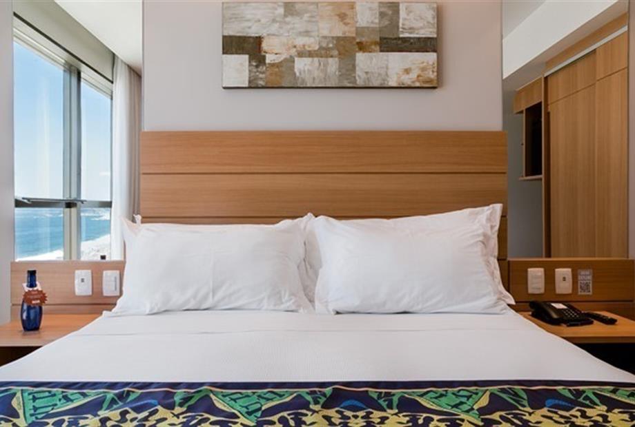 Quarto moderno e aconchegante com vista lateral da praia, que acomoda 2 adultos + 1 criança até 2 anos em berço ou nas camas existentes,TV 4...