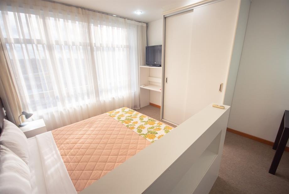 Apartamento com uma cama de casal Queen Size. Equipados com mini cozinha com armário, mini-pia, kit de cozinha, frigobar, micro-ondas, TV LC... (ver mais)