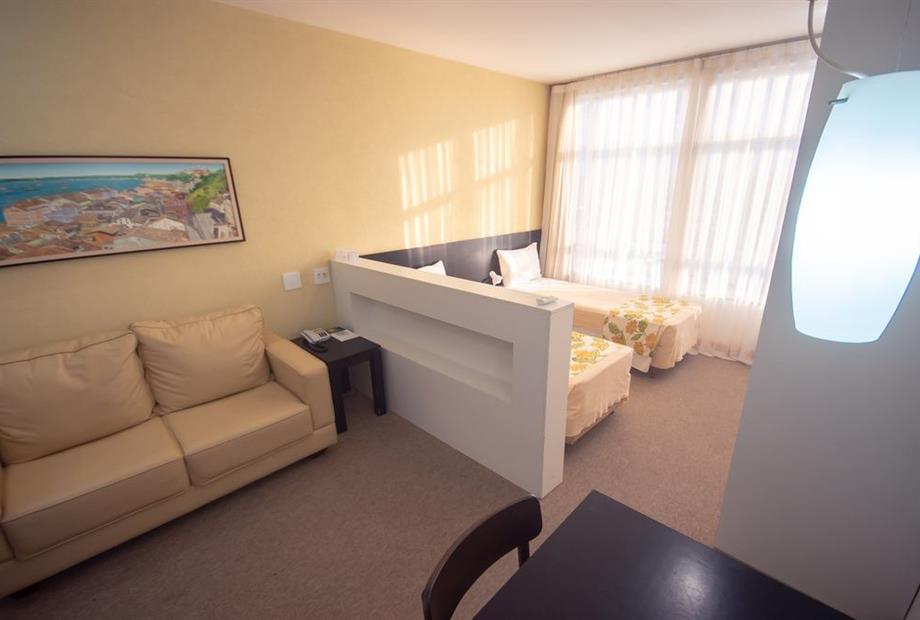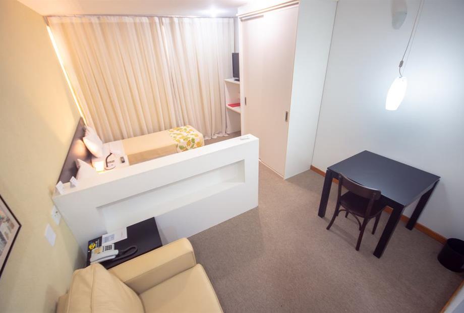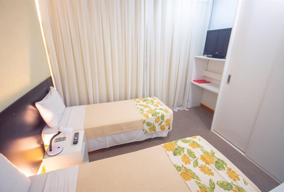 Apartamento com duas camas de solteiro. Equipados com mini cozinha com armário, mini-pia, kit de cozinha, frigobar, micro-ondas, TV LCD 32'... (ver mais)