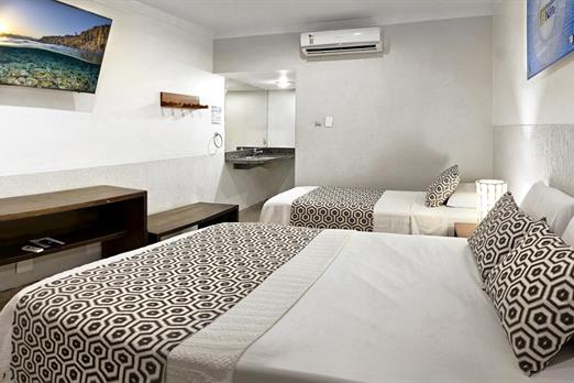 Apartamento equipado com Cama box, TV 42", Ar-condicionado, frigobar, banheiro privativo com ducha quente, secador de cabelo e varanda com...