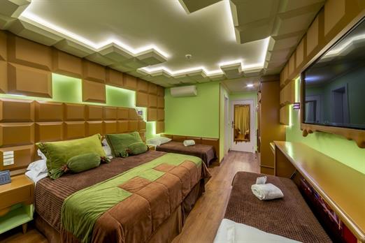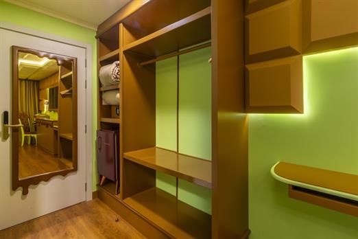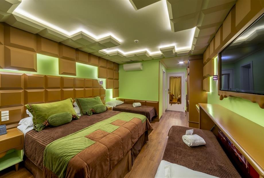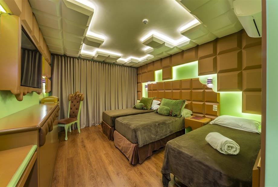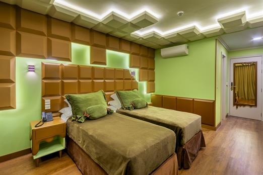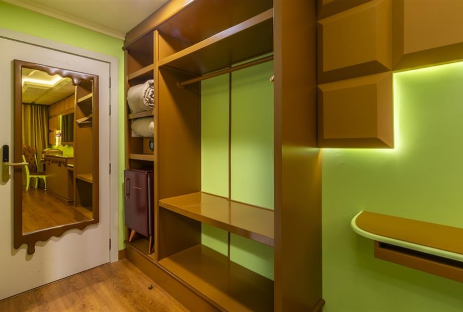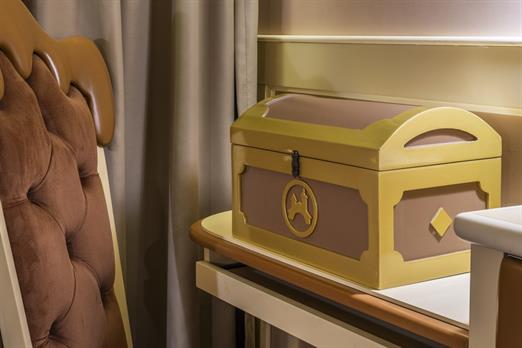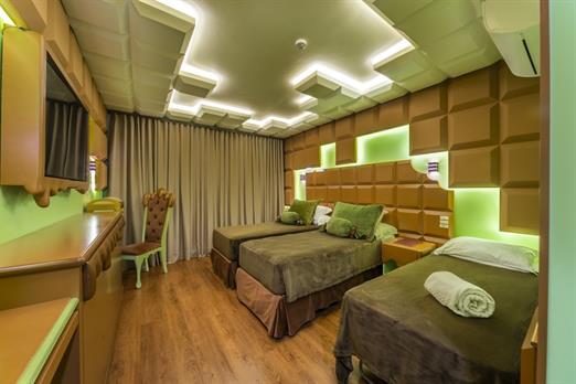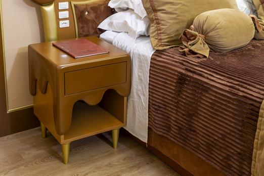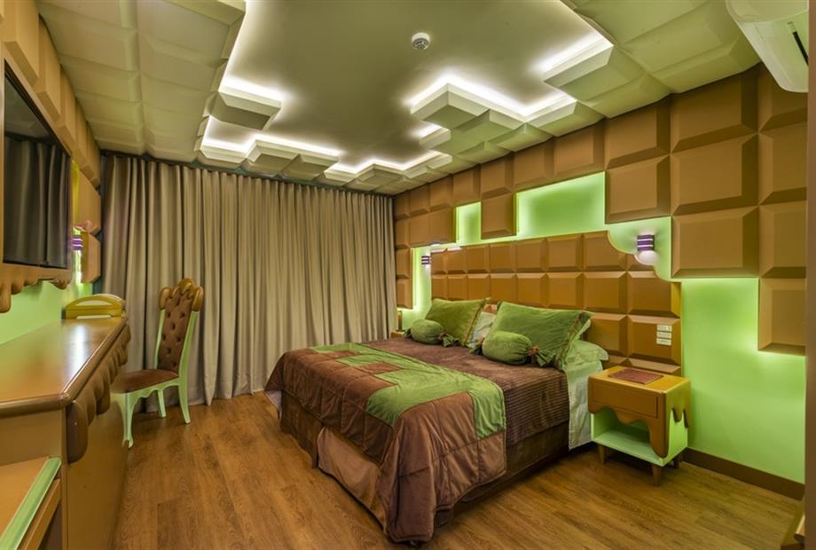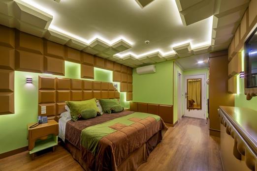 Esta suíte foi criada para quem ama chocolate! Sua inspiração vem das tradicionais barras de chocolate preto que cobrem o teto, paredes, mob...