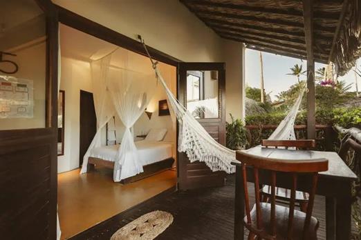 Localizada no andar superior, essa possui vista para a duna Pôr-do-Sol e para o mar da varanda. Tem ar condicionado, ventilador, wi-fi, mosq...