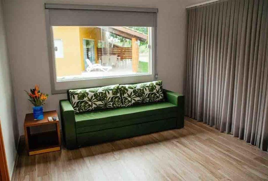 O Bangalô Barão tem capacidade máxima para até 4 pessoas, sendo dois adultos no quarto e duas crianças de até 12 anos no sofá-cama na sala....
