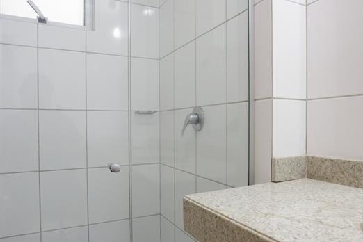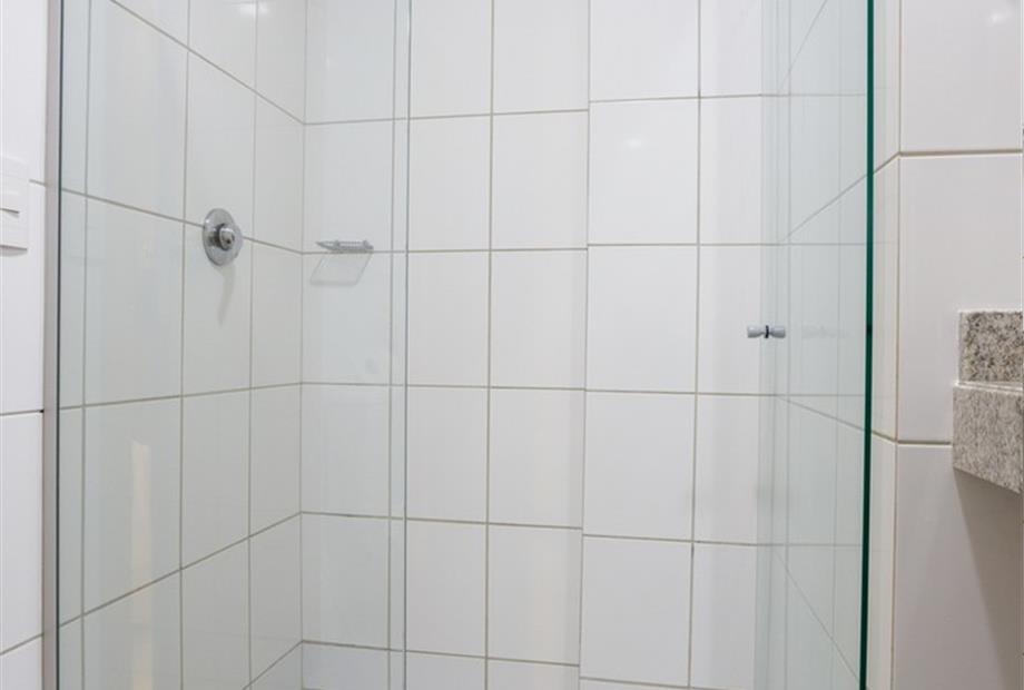Apartamento de 24m² com cama casal, copa, frigobar, ar-condicionado, mesa de trabalho e TV a cabo. Voltagem elétrica 220v. *Terceira pessoa...